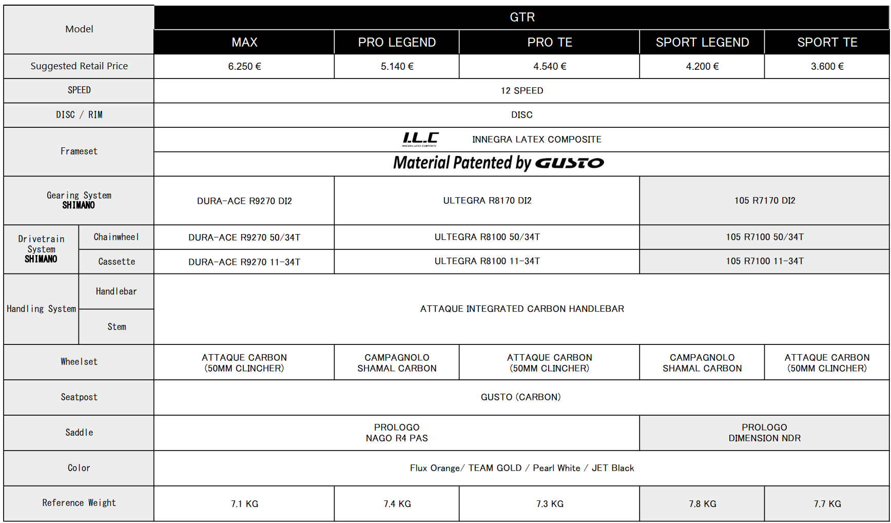 La GTR está certificada por la UCI (Union Cycliste Internationale) para su uso en competiciones profesionales oficiales.